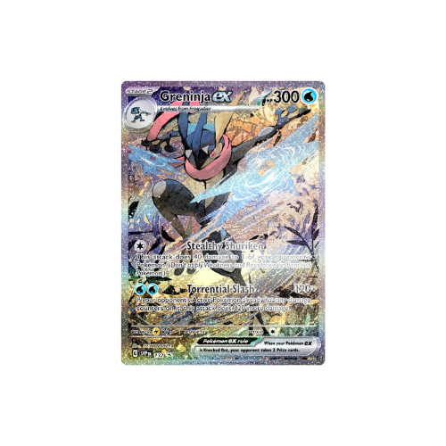 Shrouded Fable Greninja ex Special Illustration Collection: Includes five Scarlet & Violet—Shrouded Fable booster packs, one special illustration rare-style promo card featuring Greninja ex in a unique Ukiyo-e (woodblock) art style, and two foil promo cards featuring Froakie and Frogadier.