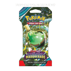 Step into Kitakami, a realm where humans and Pokémon coexist peacefully with the environment. While the area is rich in folklore, mysteries await… Delve into the lore of the enigmatic Legendary Pokémon Ogerpon, unveiled in four formidable variants of Tera Pokémon ex. Form alliances with recently discovered Pokémon, including Bloodmoon Ursaluna ex and Sinistcha ex. See the might of Greninja, Dragapult, and Magcargo increase as they captivate as Tera Pokémon ex, complemented by the introduction of new ACE SPEC cards in the Pokémon TCG: Scarlet & Violet—Twilight Masquerade collection!