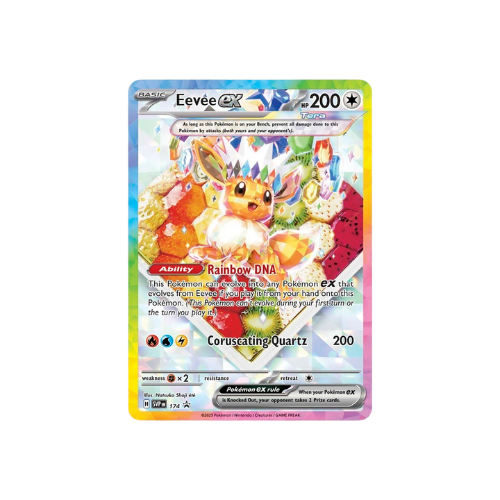 Get ready to brighten your game with the Scarlet and Violet Prismatic Evolutions Super-Premium Collection. Eevee and its Evolutions are here to spread joy, friendship, and serious sparkle. This special collection features a full-art promo card of Eevee ex in its radiant Stellar Tera form, showing off its unique Rainbow DNA.
