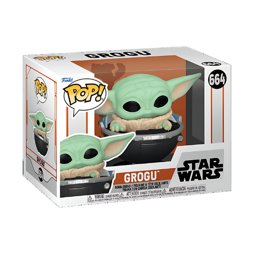 Explore the galaxy alongside Pop! Grogu™ in his hovering pram! Collect this adorable foundling as your next bounty and help reunite him with his traveling companion, the Mandalorian™, in your The Mandalorian™ collection! Vinyl bobblehead is approximately 4.55-inches tall.